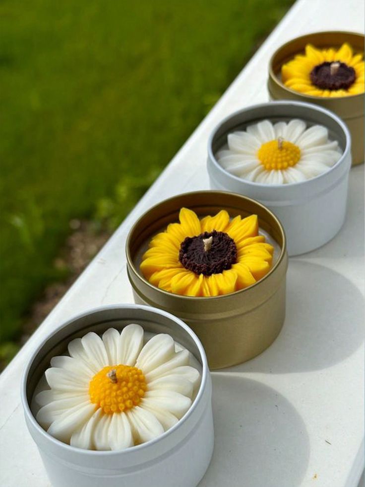 Let a little sunshine brighten up your space with this lovely sunflower tin jar candle. Featuring intricately designed sunflowers all over its lid, this candle is an easy way to bring a warm and sunny feel to any corner of your home.