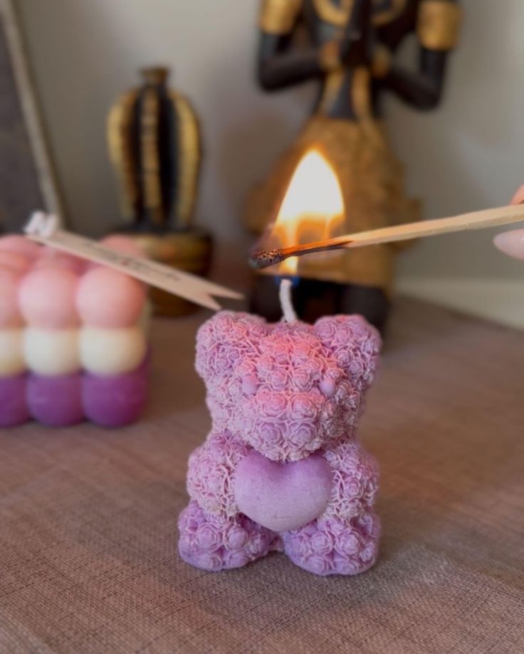 This teddy bear candle is really cute and it makes me feel comfortable. The teddy bear scented candle is shaped like a teddy bear. It smells very nice. I think the teddy bear candle is a lovely thing to give to someone, as a gift.